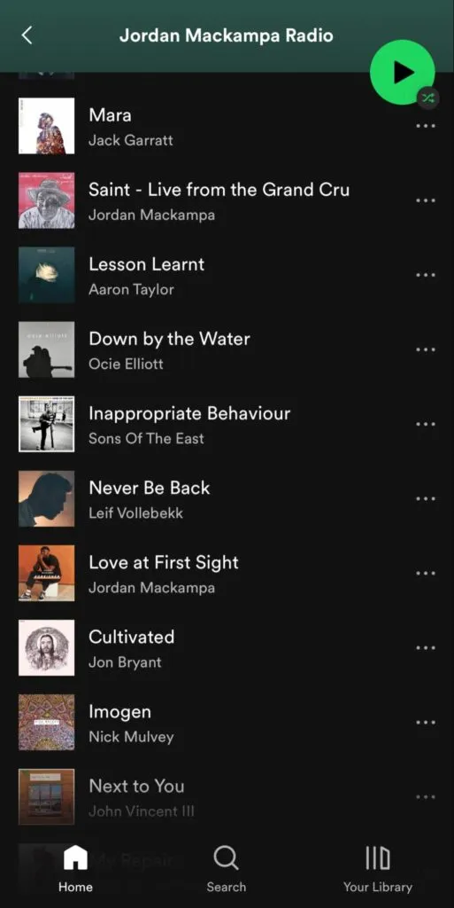 もっとシンプルな例だと、Spotify はフォントのサイズと色を使って、曲名とアーティストの間に視覚的な階層を作り出しており、さまざまなサイズと色によって、ユーザーはそれに応じてプレイリストを簡単にスキャンすることができます。