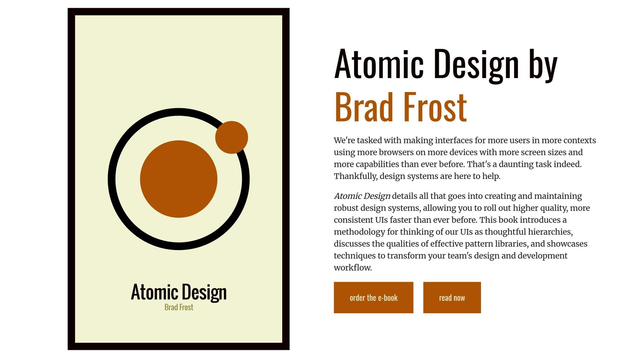 | Atoms | Basic elements | Buttons, inputs, labels |