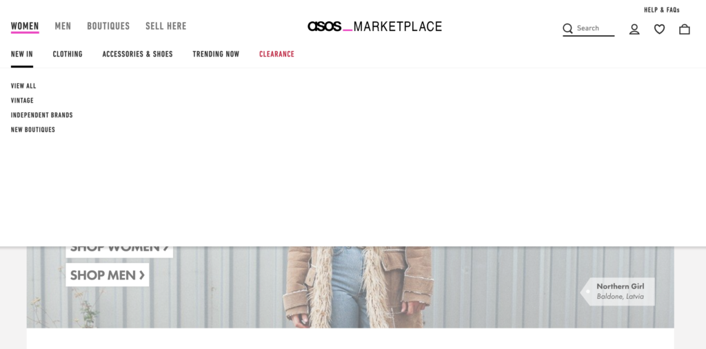 もしサイトに、アカウント情報などユーザーにとって便利なサブカテゴリーがある場合は、Asos のように二次的なバーティカルメニューを作るといいでしょう。