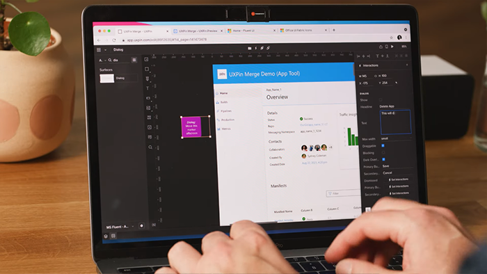 UXPin Mergeがあれば、Microsoft の フルーエントデザインシステムを Githubレポに入れ、コンポーネントを UXPinのデザインエディタにインポートすることができるようになります。そしてこのUXPin Merge のセットアップを使って、製品チームは、エンジニアが DevOps ツールの開発に使っているコンポーネントとUIコントロールを正確に活用したプロトタイプをデザインすることができます。